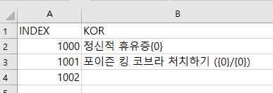 1000 을 넣으면 게임에서 해당 열에 해당되는 문자를 가져다 씁니다.